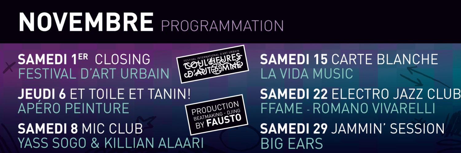 OPENING PARTY – Soirée blanche “Coul’Heures d’Automne” #4 Afin de célébrer le lancement de la 4ème édition du Festival International d’art urbain “Coul’Heures d’Automne”, participez à notre grande soirée “Opening Party” le 21 octobre, à La sChOOL ! Soirée blanche à partir de 20h :...